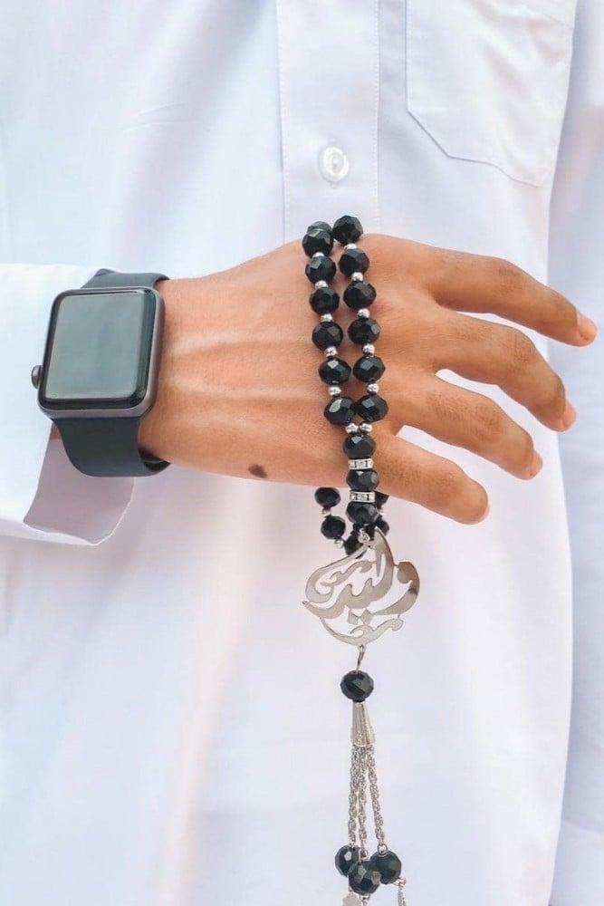 · سبحة راقية متوفرة باللون الأسود المتداخل مع اللون الفضي