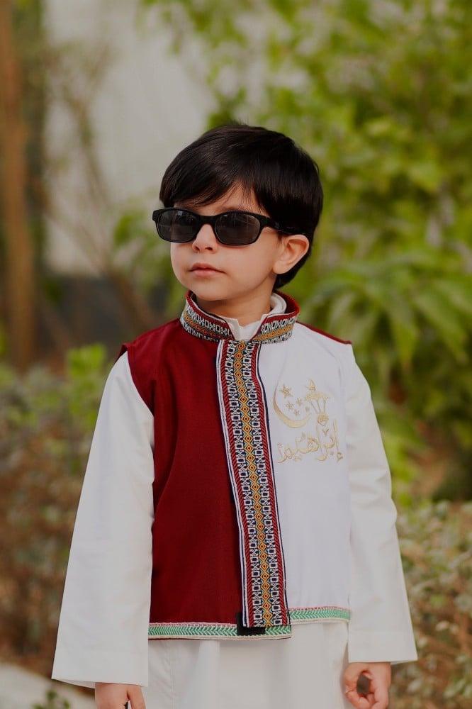 سديري ممزوج بالقوش التراثيه سدوبشكله الانيق باللون العنابي والابيضمتوفر مقاسات حسب العمرمن 6شهر الى 14سنهمع امكانيه اضافه الاسم عليه حسب طلبك**تنبيه**المقاسات تناسب الاجسام النحيفه والمتوسطه